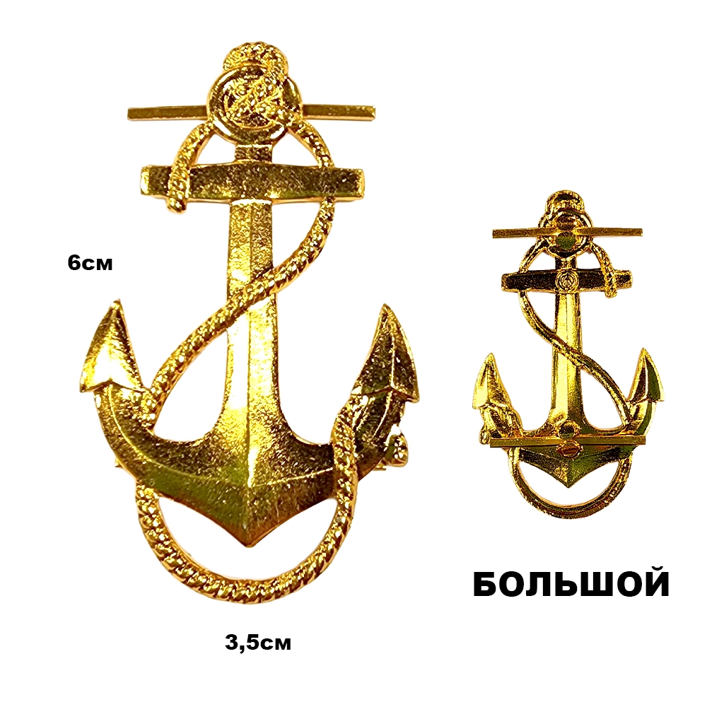 Эмблема Якорь (Большой) 6см петличный (золотой)