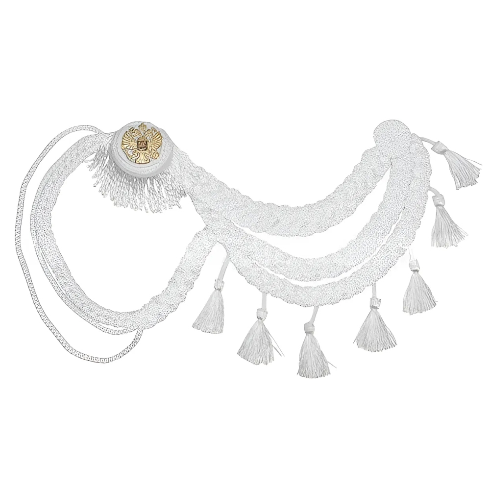 Аксельбант (белый) ДМБ с эполетом, кистями и металлическим орлом РФ
