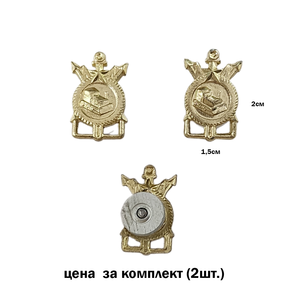 Эмблема на петлицу СТРОЙБАТ Инженерные войска (золотистый Трактор) 2шт. (закрутка) (ИВ)