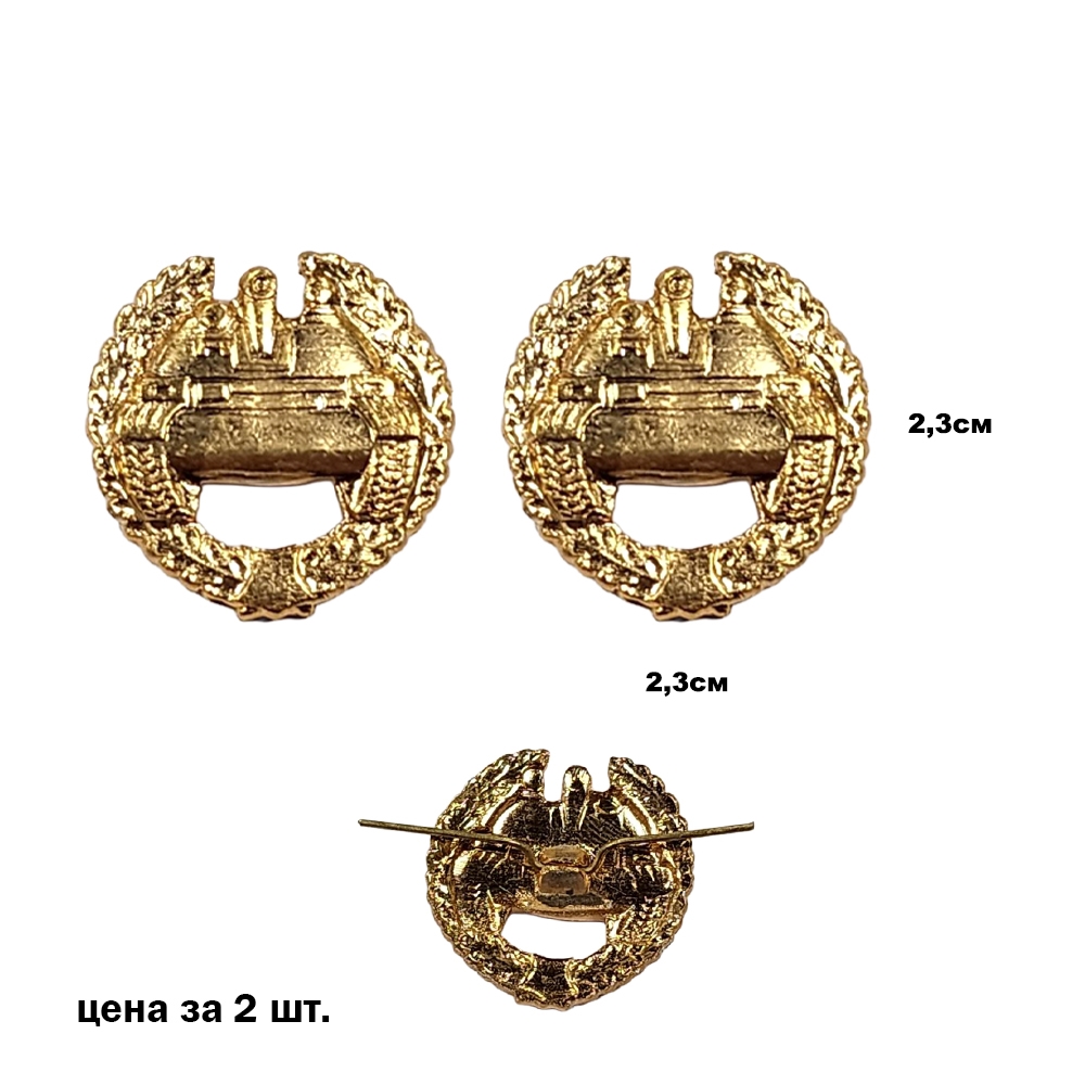 Эмблема на петлицу Танковые войска (Танк в венке) (2шт.) (золото) (ТВ)