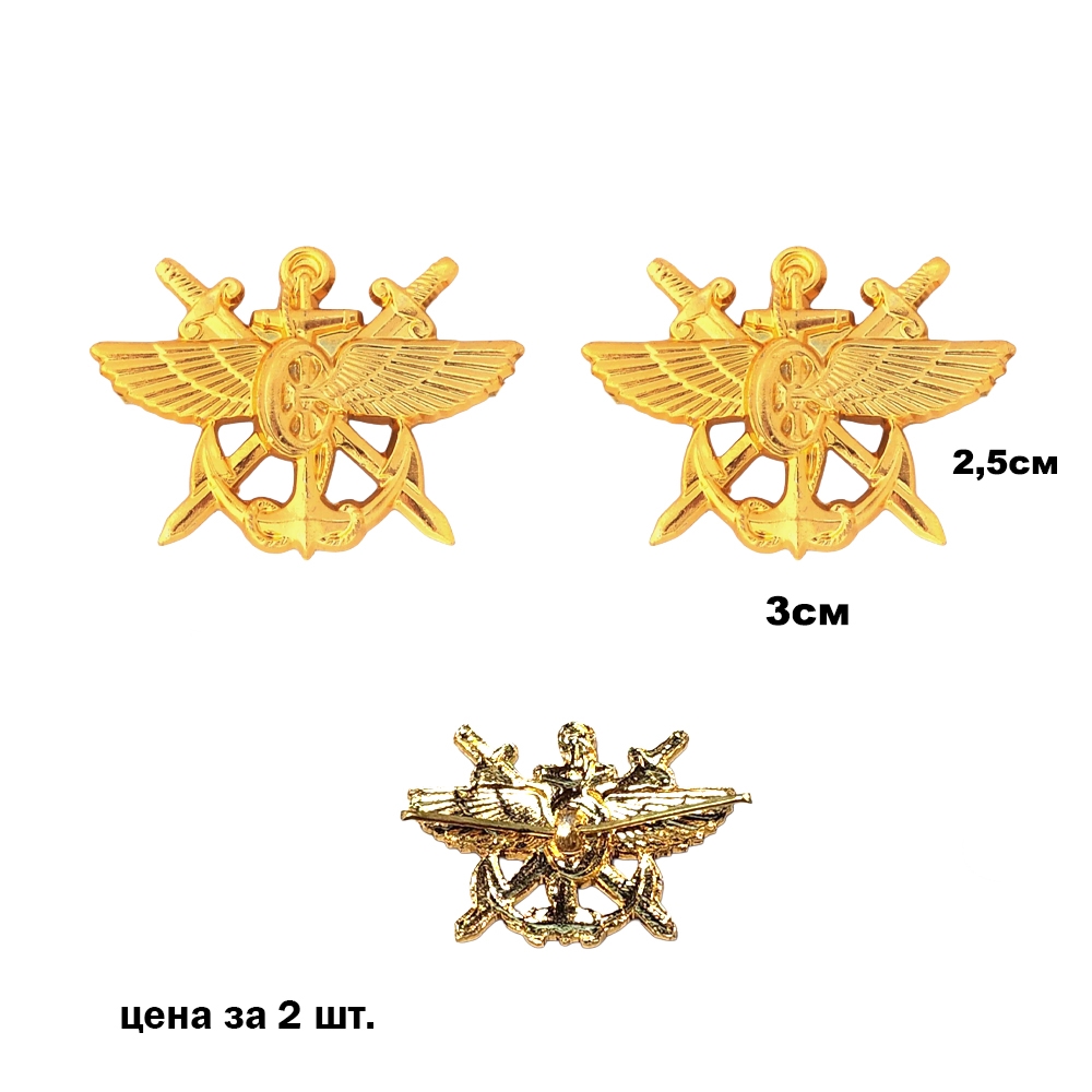 Эмблема на петлицу ВОСО (Якорь, 2 меча) (2шт.) (золото)