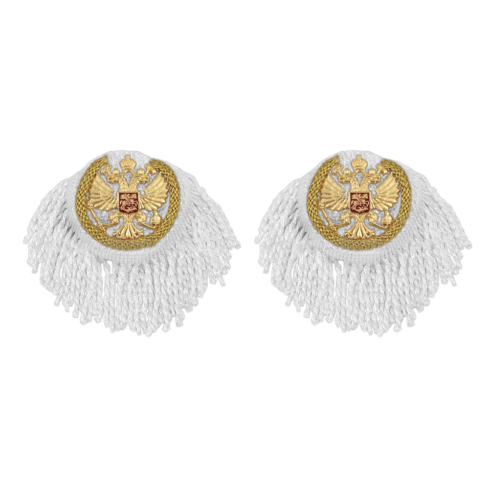 Эполет белый с Орлом и флагом РФ и золотым люрексным кантом (2шт.)