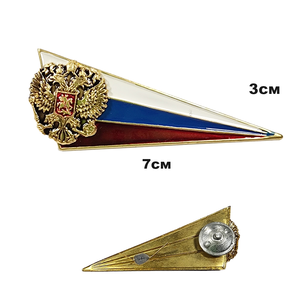 Флажок на берет с Гербом (Орёл крылья вверх) флаг России (малый) (уголок)