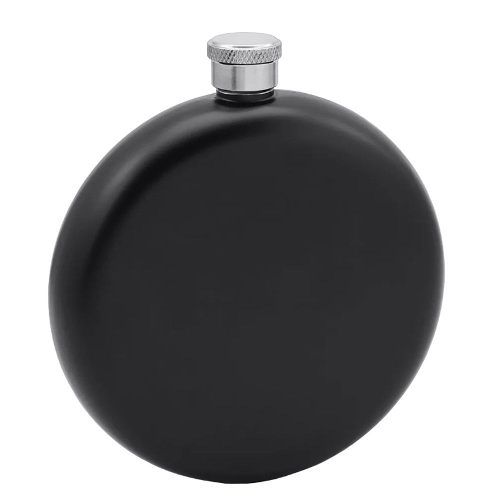 Карманная фляга черного цвета из пищевой нержавеющей стали для спиртных напитков или воды емкостью 220 мл. Фляга декорирована барельефом с изображением крокодила. Благодаря круглой форме фляга удобно помешается во внутренний карман одежды и не выделяется при ношении.