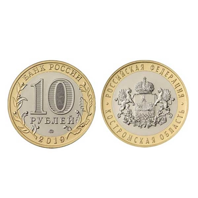 Монета 10 рублей "Костромская область" 2019 год (герб)