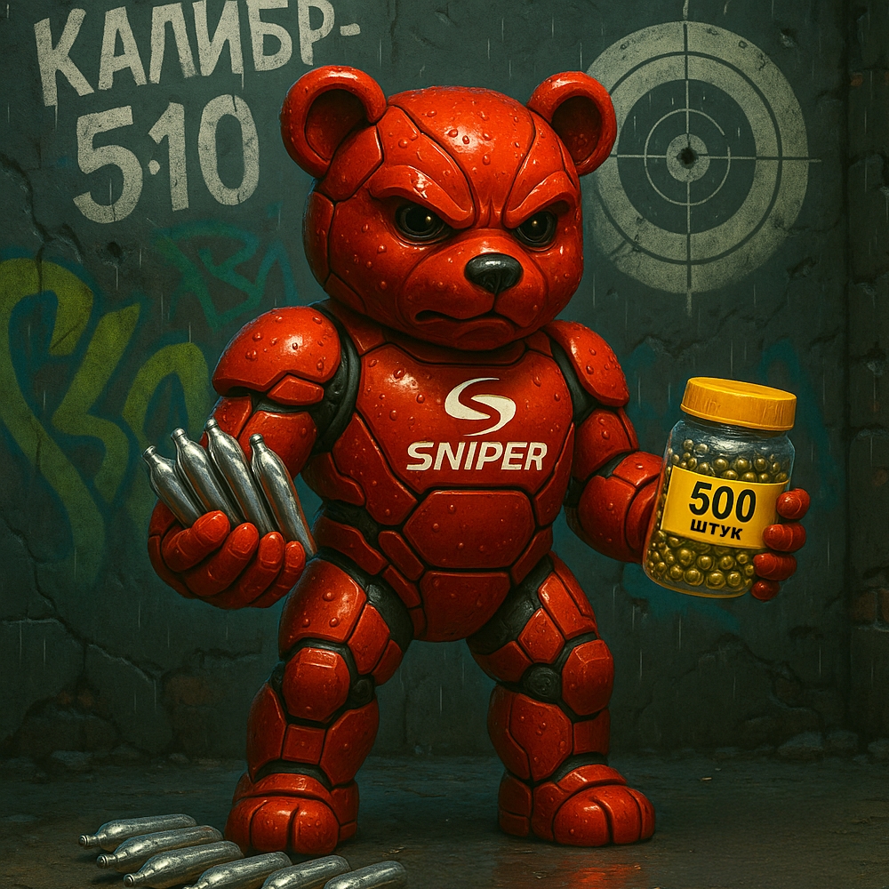 В наборе: 10 баллонов с CO2 по 12 граммов и 500 шариков калибра 4,5 мм.