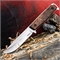 Рукоять выполнена из дерева. Это один из самых традиционных и распространённых материалов для рукоятей ножей. Основное преимущество дерева — его текстура, которая позволяет легко создавать практически любую художественную форму рукояти. Традиционно используется на охотничьих ножах.