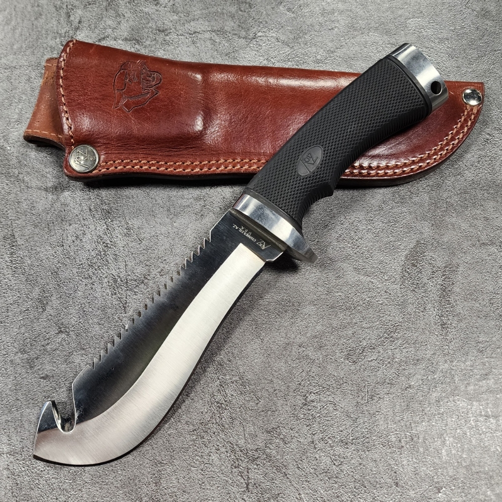 Дополнительная информация Guthook — крюк для безопасного вскрытия брюшной полости, Lanyard Hole — отверстие или приспособление в рукояти ножа для страховочного корда или ремня., Больстер и навершие из нержавеющей стали.