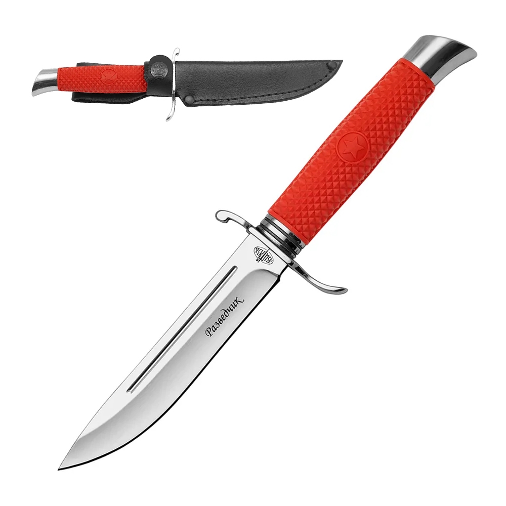 Нож нескладной Разведчик ст.9Cr18MoV (Красный) (Витязь)