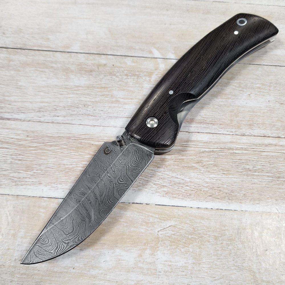 1. Складной нож из дамасской стали «Аляска» - рукоять из древесины венге.