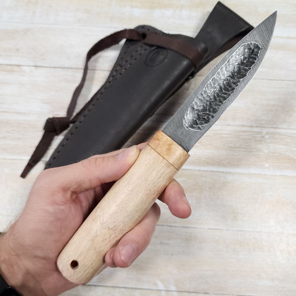 Нож Якутский Средний ст.Дамаск (карельская берёза) (Сёмин)