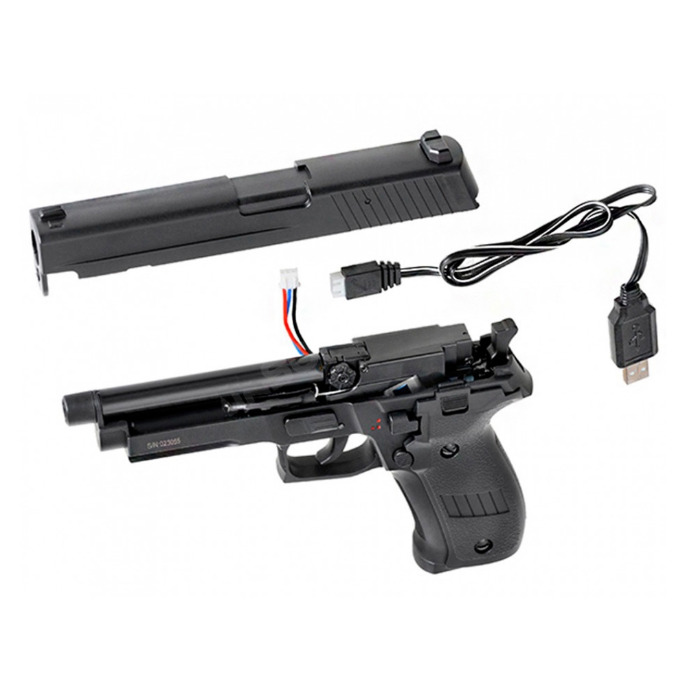 Комплектация : пистолет, магазин, аккумулятор, USB зарядное устройство, лоадер, инструкция
