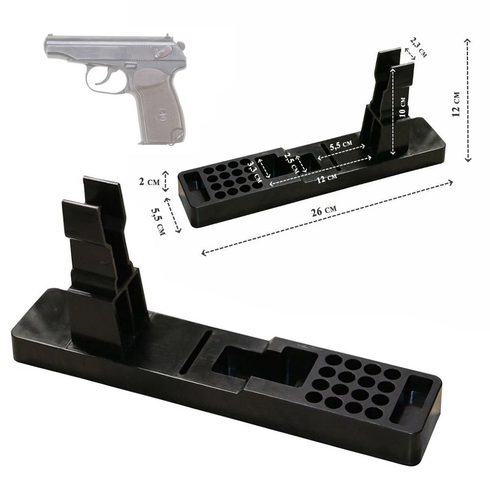 Подставка для пистолета Макарова (пластиковый ложемент) черного цвета. Место для 2-х обойм, пистолета, 16 патронов.