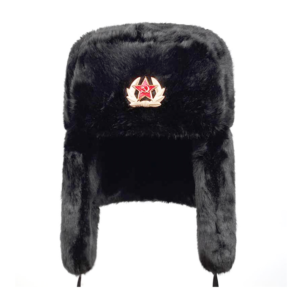 Шапка - ушанка мех (Чёрный) с кокардой
