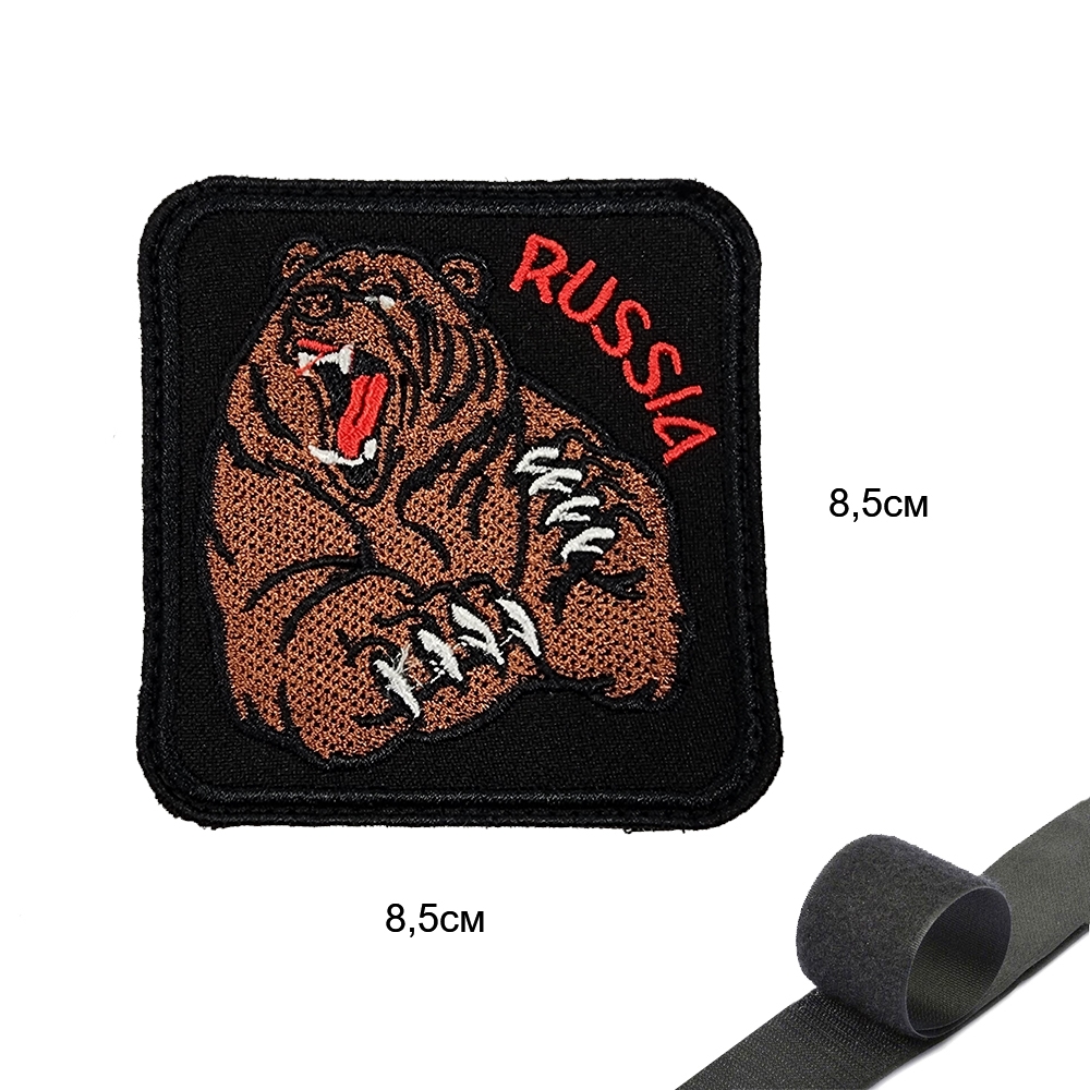 Шеврон нашивка Russia (медведь) (квадрат) (патч) на липучке