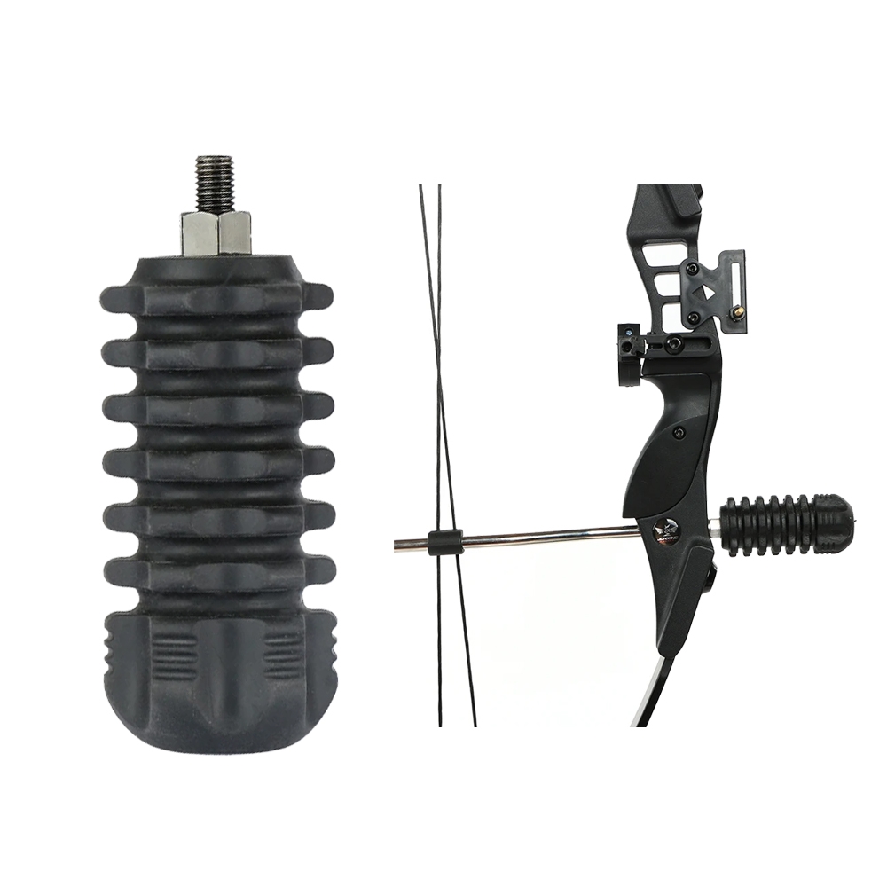 Охотничий стабилизатор для лука служит для изменения центра тяжести лука, предотвращая заваливание лука после выстрела. Кроме того, резиновый корпус стабилизатора уменьшает остаточную вибрацию, возникающую в момент выпуска стрелы.