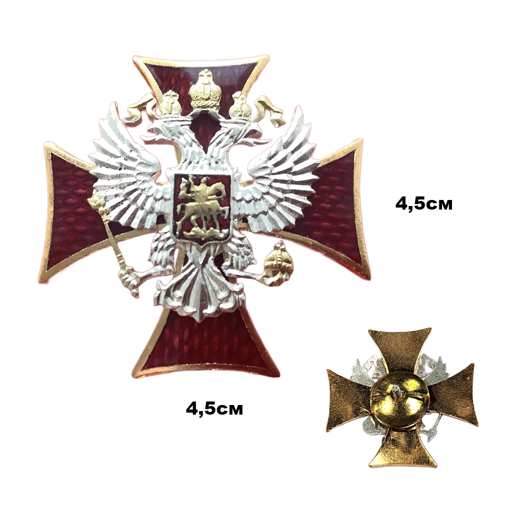 Значок Крест красный с гербом РФ (горячая эмаль)