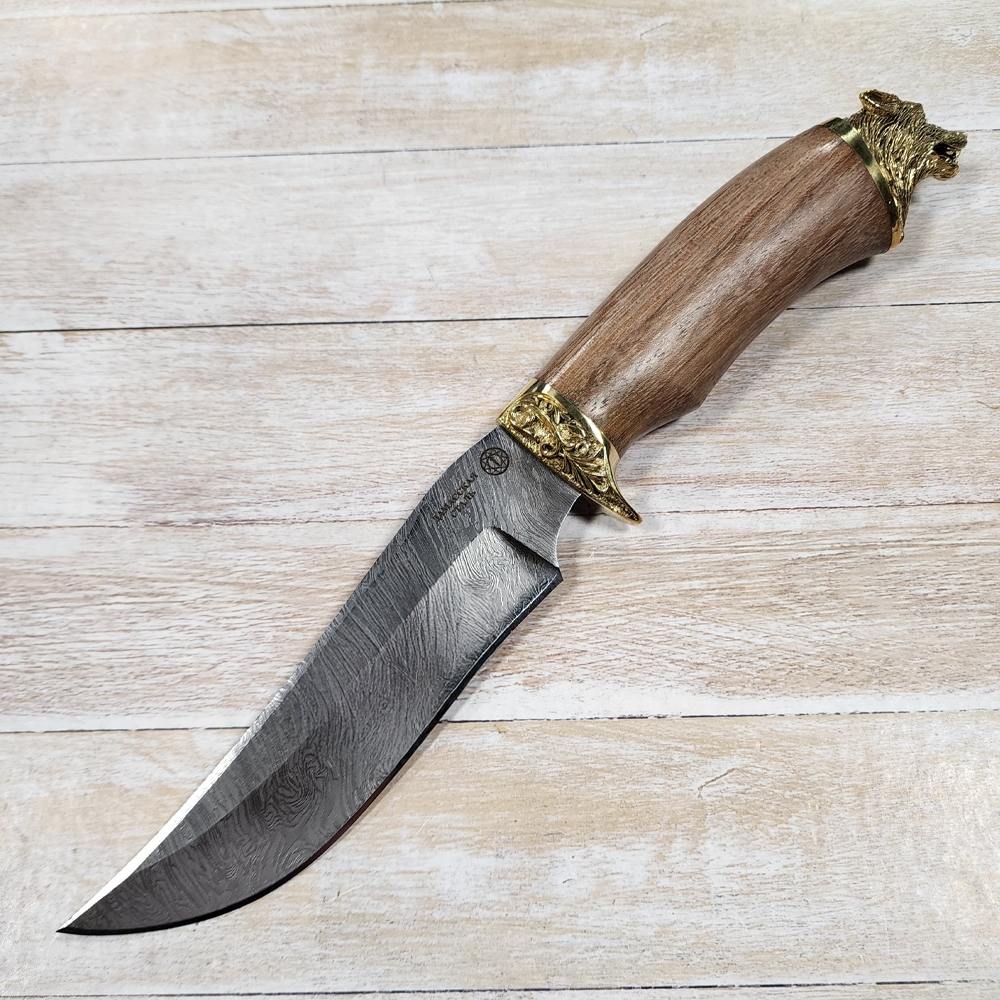 Нож Егерь (литьё) ст.Дамаск (венге) (Самойлов) голова Волка